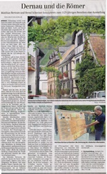 o       Aktuell sind Kapitel über die Infrastruktur (Häuser, Strassen, Bahn, Wasser, etc.), die Wirtschaftsstruktur (Weinbau, Landwirtschaft, etc.) und "Sitten und Gebräuche" ebenso neu hinzugefügt worden, wie Fotos von beeindruckenden Fundstücken und ausführliche Berichte über die damaligen Ausgrabungen der ehemaligen "Römervilla von Dernau" (Ausgrabung von 1884/1885) und von einer eigenartigen "Gussform" , die vor fünfzig Jahren in der Ahr gefunden wurde.