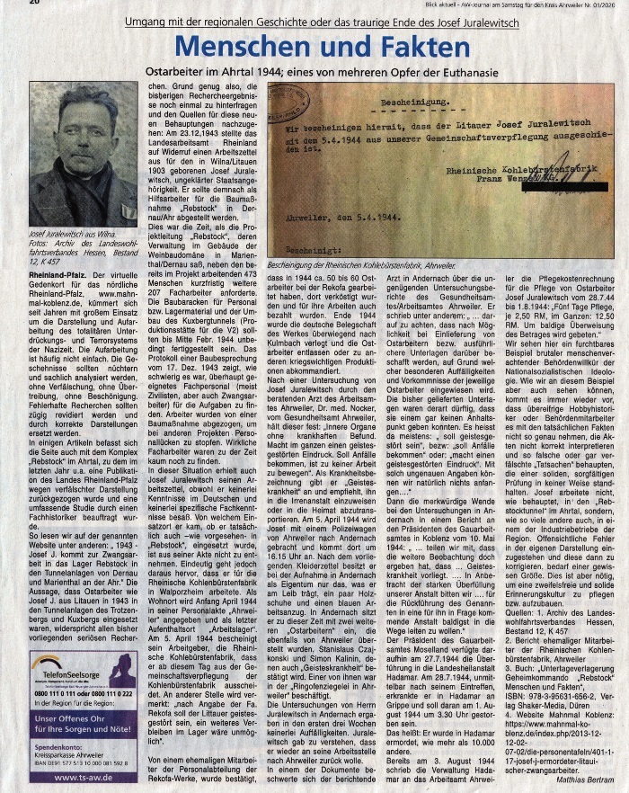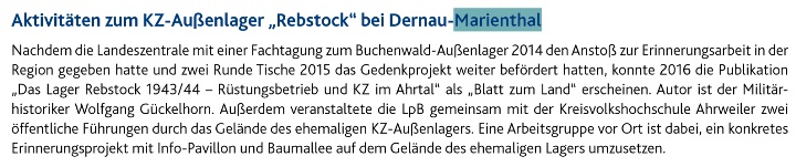 Der Historiker und die Uni Trier haben jetzt den Auftrag, die verschiedenen Gedenktafeln mit falschen Behauptungen zu überarbeiten und ein neues Konzept eines würdigen Gedenkens der Zwangsarbeiter in verschiedenen Lagern im Ahrtal zu erarbeiten.