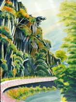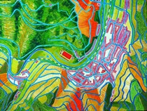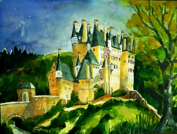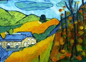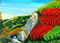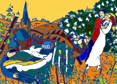 Nachstehende kleine künstlerische Spielerei mit dem Titel "Marc Chagall grüßt Dernau" entstand am Computer. Weiter Gemälde mit Bezug zum Ahrtal und Dernau finden Interessierte weiter unten bzw. unter ( www.ahrthal.de )