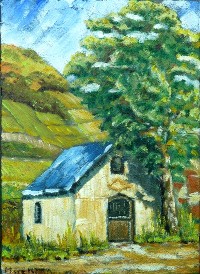 Nachstehendes Gemälde zeigt die alte Kapelle in Dernau, die durch einen Treffer im 2. WK weggebombt wurde. Das danebenstehende Foto zeigt die Inschrift, die über dem Kapelleneingang hing. Bisher war es nicht möglich, den genauen Text zu entziffern. Vielleicht kann der eine oder andere Dernauer helfen den Text zu entziffern? Antwort bitte an untengenannte Email Adresse oder telefonisch. Danke.