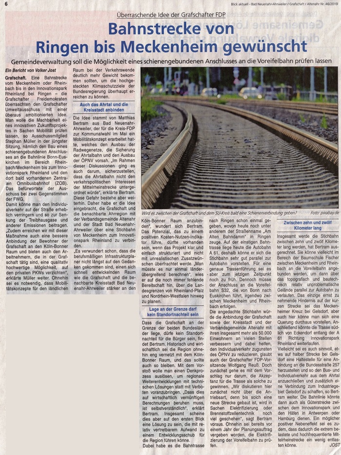 Der Wiederaufbau im Ahrtal ist ein großes Thema, gerade wenn es um Projekte geht, die von den Deutschen Bahn umgesetzt werden. Selbst unter Zeitdruck stehend, scheut die Bahn sich nicht ordentlich Druck auf kommunale Vertreter auszuüben, um kommunale Entscheidungen im Sinne der Bahn umzusetzen. Das kann gefährlich sein. Die verantwortlichen Politiker in Mainz sollten ein Auge darauf werfen. Der aktuelle Newsletter für den Monat Oktober 2024 geht auf die Problematik ein. Unter der Website www.ahrthal.de können sie sich für dieses Informationsblatt/Newsletter zum Wiederaufbau im Ahrtal anmelden.
