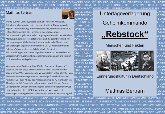 Das war in diesem Fall offensichtlich nötig. Mittlerweile scheint es bei anderen Stellen, selbst beim Land Rheinland-Pfalz, Konsens zu sein, dass ärgerlicherweise jahrzehntelang Falschinformationen, gefördert mit Steuer- und Spendengeldern gutgläubiger Bürger immer wieder verbreitet wurden. Warten wir ab, was der Gutachter des Landes noch dazu zu sagen hat. Auch er wird kaum an den vorliegenden Fakten vorbeikommen, die im Buch "Untertageverlagerung Geheimkommando Rebstock", ISBN: 978-3-95631-656-2 zumindest Einige zum Einlenken und Nachdenken brachte.