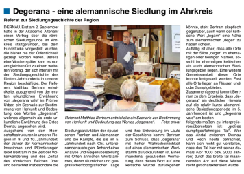 Alemannische Siedlungsspuren im Ahrtal. Ein Deutungsversuch des Wortes Degerana vale von Matthias Bertram, Ahrweiler