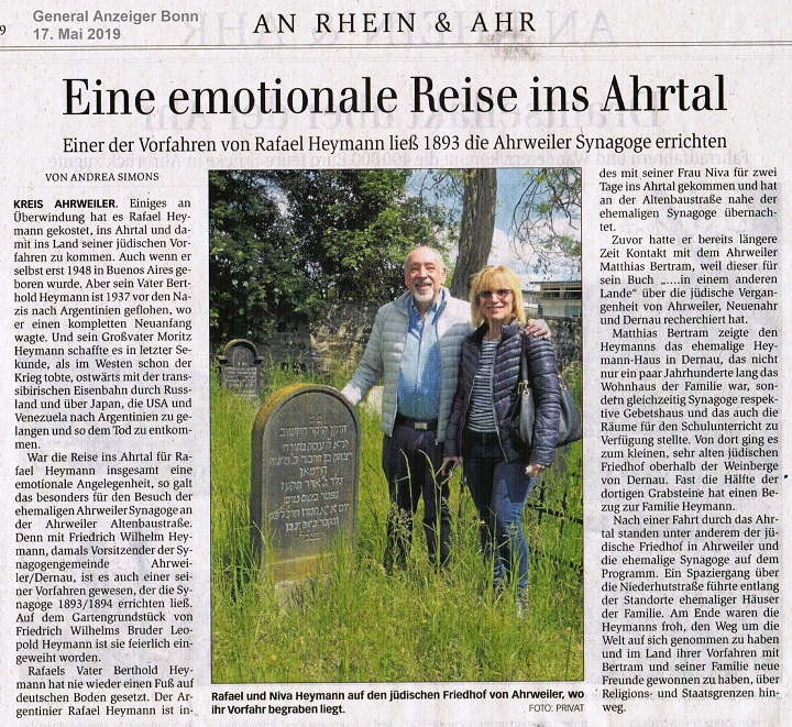 Hatten das Land, der Kreis und der Historiker geglaubt, dass nach der Veröffentlichung der Studie des Historikers Dr. Grieger Ruhe in diese unwürdige Diskussion kommen würde und der Vorstand des Synagogenvereins Ruhe geben würde, zumindest solange bis das von der Uni Trier und dem Historiker erarbeitete neue Konzept für die Gedenktafeln in Dernau, Marienthal und Ahrweiler vorliegen würde, so sahen sie sich nun kräftig getäuscht.